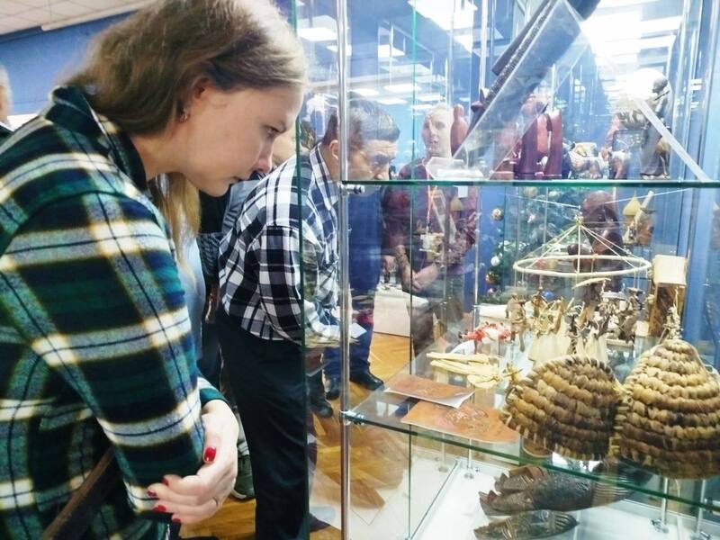 Прогуливаясь вдоль витрин со старинными цветными шарами и хрупкими винтажными игрушками со всего мира, мы познакомились с традиционным и зимними праздниками Беларуси, уникальными обрядами и новогодними батлеечными интермедиями.